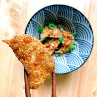 Gyoza are japanese moon croissant shaped dumplings. Although they traditionally contain pork, there's many different ways to make them plant based. Remember this blog is about fusion food!