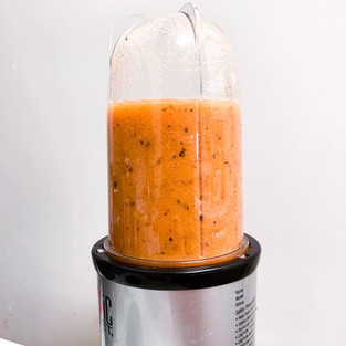 Wait for the tomatoes to cool down a bit and put them in your blender. I like to add some chili flakes for an extra spicy taste.