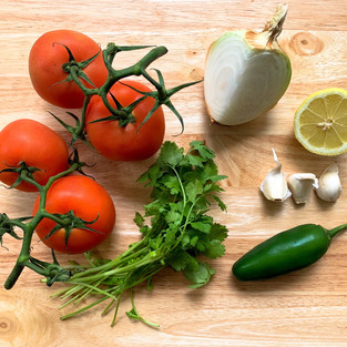 Roast the 3 other tomatoes by putting them in a pan on a stove on medium-high heat until they turn black. Turn them and keep cooking them until they get that fire roasted flavor.